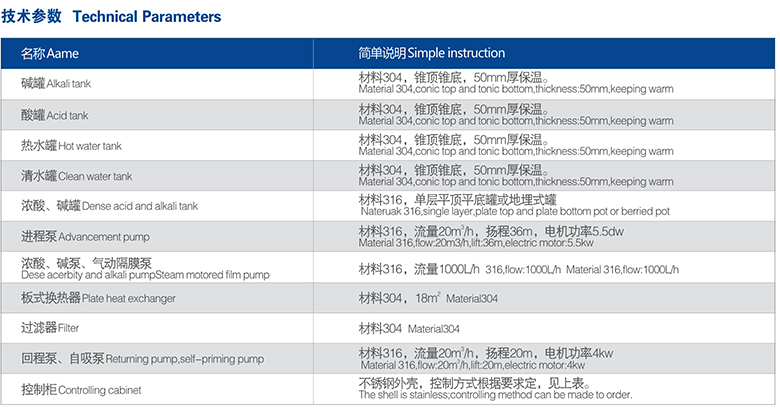 系统可单独进行酸洗、碱洗、热水冲洗等工序,也可根据需要编制特定的清洗程序进行全自动的清洗;不仅能有效的将设备清洗干净,而且还能控制微生物生长;同时可根据客户要求配置半自动和全自动控制系统。