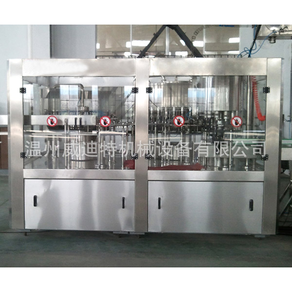 1、三合一灌装机用于聚瓶含气饮料的生产。