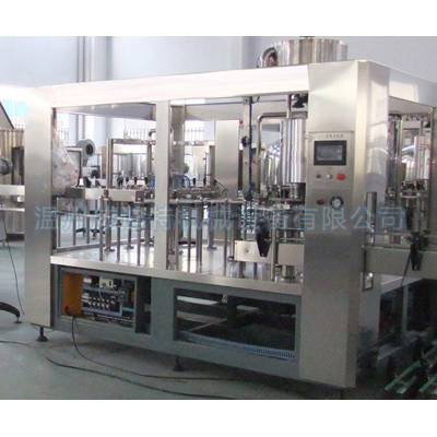 本机集冲瓶、灌装、旋盖三位一体,PLC自动控制。经过预处理的PET空瓶,通过无菌水冲洗后自动进入灌装封口工序。